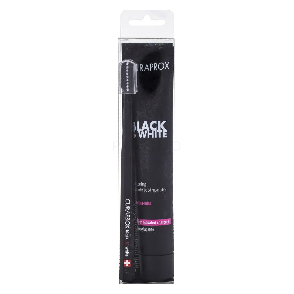 Mit dem Set mit der Zahnpasta und der Zahnbürste Curaprox Black is White erzielen Sie wirkungsvoll und sanft schöne weiße Zähne.