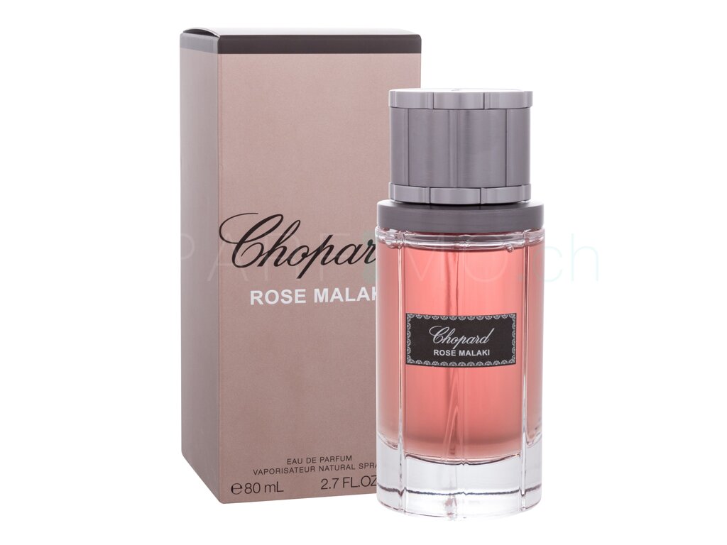 Wir verlocken Sie zu einer Duftreise in den Orient…? Das Eau de Parfum Chopard Malaki Rose (2014) ist ein perfektes Werk der schweizerischen Juwelier- und Parfummarke Chopard. Es betont Ihr Charisma mit einem wunderschönen Parfum und dank dem gelungenen Design brilliert es auch in Ihrem Wohnungsarrangement. Um seine Komposition hat sich die erfahrene Parfümeurin Amandine Clerc-Marie verdient gemacht. Obwohl überwiegend ein Rosenduft, das Eau de Parfum Chopard Malaki Rose bietet einen pikanten holzigen Charakter – mit metallischen, ledrigen und tabakartigen Untertönen. Aus diesem Grund fesselt das Parfum neben der Frau und den Mann – den zeitgenössischen Gentleman, der gerne seine Kraft und Entschlossenheit, sowie seine Zartheit und Galanterie zeigt. Bringen Sie sich mit Ihrem Partner zu besonderen Events sowie in romantischen Augenblicken mit demselben Duft – dem Eau de Parfum Chopard Malaki Rose in Einklang!