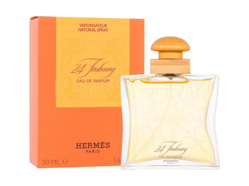 Der Name 24 Faubourg erinnert an die Adresse des Hauptgeschäfts von Hermes in Paris. Die Flasche des Dufts stellt ein Seidentuch im Wind dar. Der Duft gewann 18 Preise im Gebiet der Parfümherstellung. 24 Faubourg ist ein blumiger, holziger, nach Amber riechender Duft. Zusammen mit Orangen und Bergamotte verleiht er Faubourg einen deutlichen Orangengeschmack. Dazu gesellt sich aromatischer Jasmin mit Tönen von Sandelholz. Im Jahr 1997 wurde dieses Parfüm zum besten Frauenduft von Hermes gewählt.