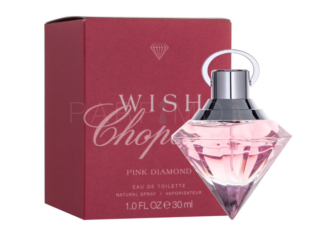 Fast jede Frau träumt davon, einen perfekten Diamanten im Besitz zu haben. Selbst ein Duft kann sich in ein einzigartiges Juwel verwandeln, das gleich der Frau, die es in seine duftenden Akkorde einhüllt, strahlt und brilliert. Erliegen Sie dem Zauber des Eau de Toilette Pink Wish von der Marke Chopard, das ein Schmuckstück wird, welches Sie nicht mehr werden loslassen wollen. Der im Jahr 2005 entworfene Duft verbirgt sich hinter dem einzigartigen Flakon Design in Form eines rosa Diamanten.