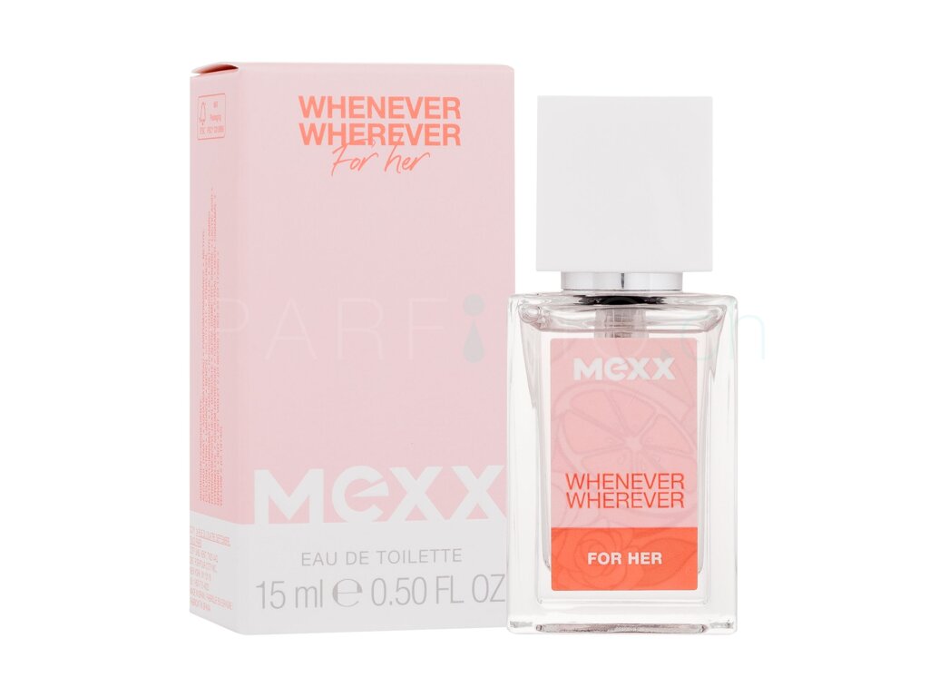 Das Eau de Toilette Mexx Whenever Wherever ist ein angenehm süßliches blumig-fruchtiges Parfum für die Frau des dritten Jahrtausends, die Arbeit und Freizeit unter einen Hut bringen kann und für Ihre Freunde und die ganze Familie gerne ein Vergnügen und andere Events organisiert. In der Komposition herrscht der Duft von Birne, Moschus und weißen Jasminblüten vor; die Komposition ist mit den Akkorden von Mandarine untermalt. Das Parfum Whenever Wherever können Sie zu verschiedenen Anlässen tragen, von früh bis spät, in der Arbeit, bei Business Meetings, nach dem Besuch eines Sportclubs, beim Shoppen, in der Gesellschaft sowie auf romantische Dates.