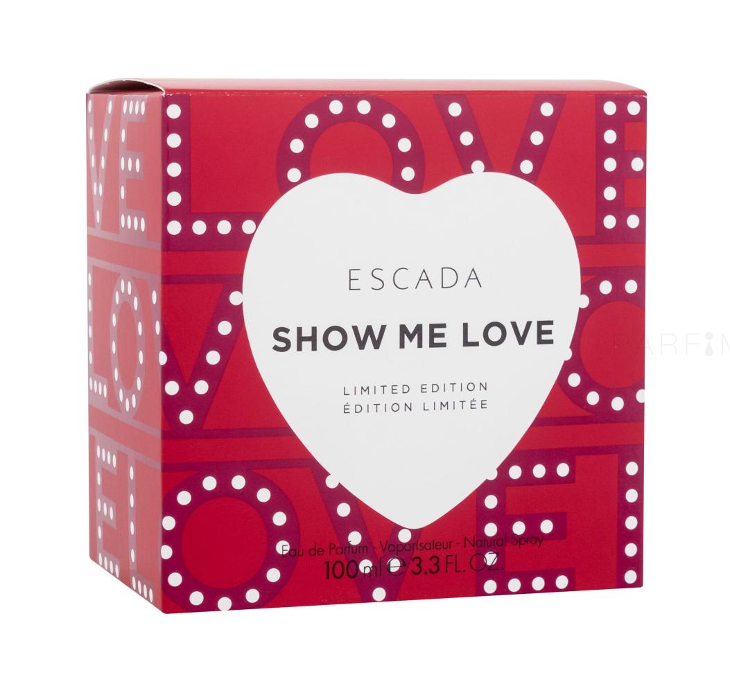 Das Eau de Parfum Show Me Love folgt auf die Eaux de Toilette Candy Love aus dem Jahr 2020 und Fairy Love aus dem Jahr 2021. Die begehrte deutsche Marke ESCADA bringt auffallende, kunterbunte Kleidung, Handtaschen sowie Parfums auf den Markt, dank denen sie einfach wiedererkennbar ist. Jetzt können Sie auf Ihren Schminktisch bereits das dritte entzückende ESCADA-Herzchen – das Eau de Parfum Show Me Love stellen. Es ist im Vergleich zu den Eaux de Toilette intensiver und somit wird Ihr olfaktorisches Erlebnis langanhaltend. Zögern Sie nicht, das ESCADA Show Me Love ist ein Parfum mit der echten Sternenkraft, mit der mit dem Wort „Love“ bedruckten Schachtel im Stil der ikonischen Aufschrift auf dem Broadway und dem Flakon, das an den roten Samt der Theatervorhänge erinnert. Mit dem Parfum brillieren Sie jederzeit und überall.