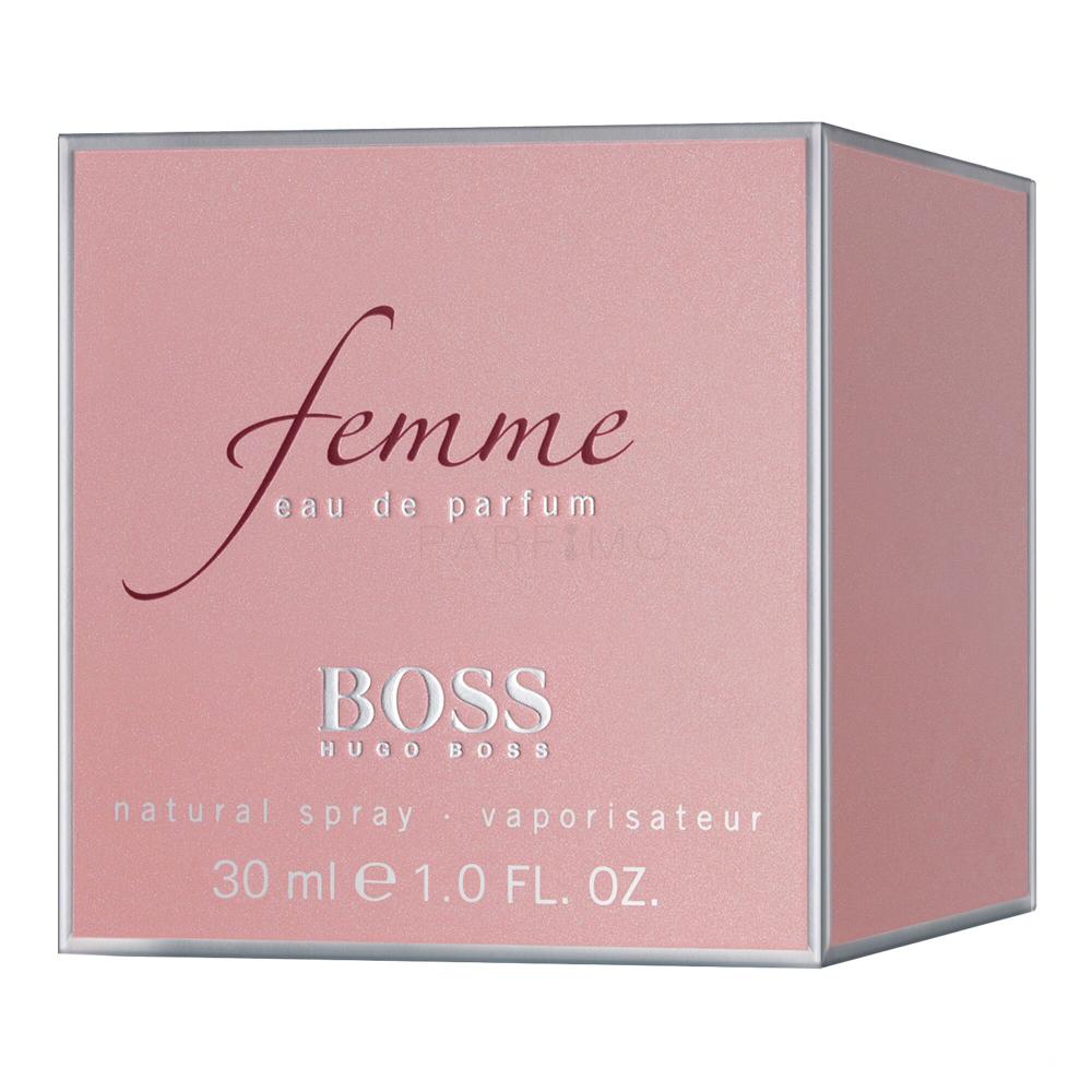Der Damenduft Femme bildet eine unsichtbare Aura, die uns direkt die Vorstellung einer feurigen Frau vor Augen führt. Die leichte Wärme vom Duft von Femme verbindet die Raffiniertheit mit Modernem. Es ist der feinste und verführerischste Duft der bisher eingeführten Damendüfte der Familie Boss. Femme wiederspiegelt die Aura der modernen Frauen. Ihre Vision von der Welt ist klar, verbirgt aber Charisma und prunkvollen Charme in sich. Die Frische fehlt ihr nicht. Gleichzeitig strahlt sie eine greifbare wärmende Zärtlichkeit aus. Ohne kleinste Schwankung interpretiert sie sich selbst als ein vollkommenes, weibliches und unabhängiges Wesen. Ein angenehmer, nicht aufdringlicher Duft mit Rosen und saftigen Früchten. Ein sanfter süsser und satter Duft.