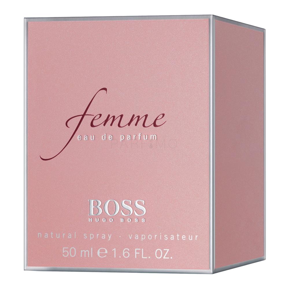 Der Damenduft Femme bildet eine unsichtbare Aura, die uns direkt die Vorstellung einer feurigen Frau vor Augen führt. Die leichte Wärme vom Duft von Femme verbindet die Raffiniertheit mit Modernem. Es ist der feinste und verführerischste Duft der bisher eingeführten Damendüfte der Familie Boss. Femme wiederspiegelt die Aura der modernen Frauen. Ihre Vision von der Welt ist klar, verbirgt aber Charisma und prunkvollen Charme in sich. Die Frische fehlt ihr nicht. Gleichzeitig strahlt sie eine greifbare wärmende Zärtlichkeit aus. Ohne kleinste Schwankung interpretiert sie sich selbst als ein vollkommenes, weibliches und unabhängiges Wesen. Ein angenehmer, nicht aufdringlicher Duft mit Rosen und saftigen Früchten. Ein sanfter süsser und satter Duft.