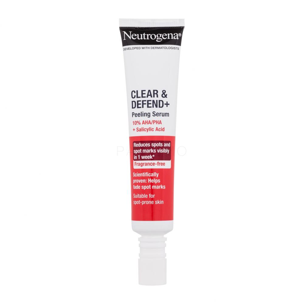 Das Neutrogena Clear & Defend+ Peeling Serum rückt Mitessen und Pickelmalen zu Leibe. Hohe Konzentration an Spitzensäuren entfernt abgestorbene Hautzellen, reduziert Mitesser, verbessert die Textur der Haut und hellt dunkle Pickelmale auf, damit die Haut gesund und strahlend aussieht.