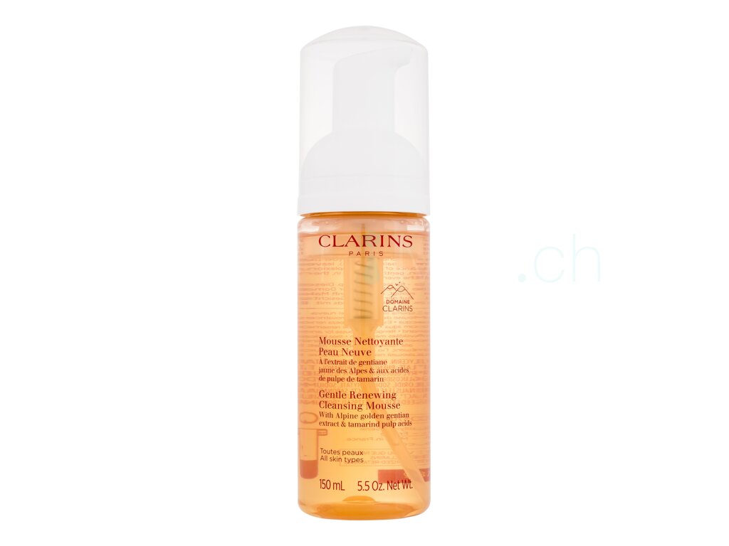 Befreien Sie dank dem natürlichen Reinigungsschaum Clarins Gentle Renewing, der organische Extrakte aus der nachhaltigen Landwirtschaft beinhaltet, Ihre Haut von Unreinheiten und Make-up.