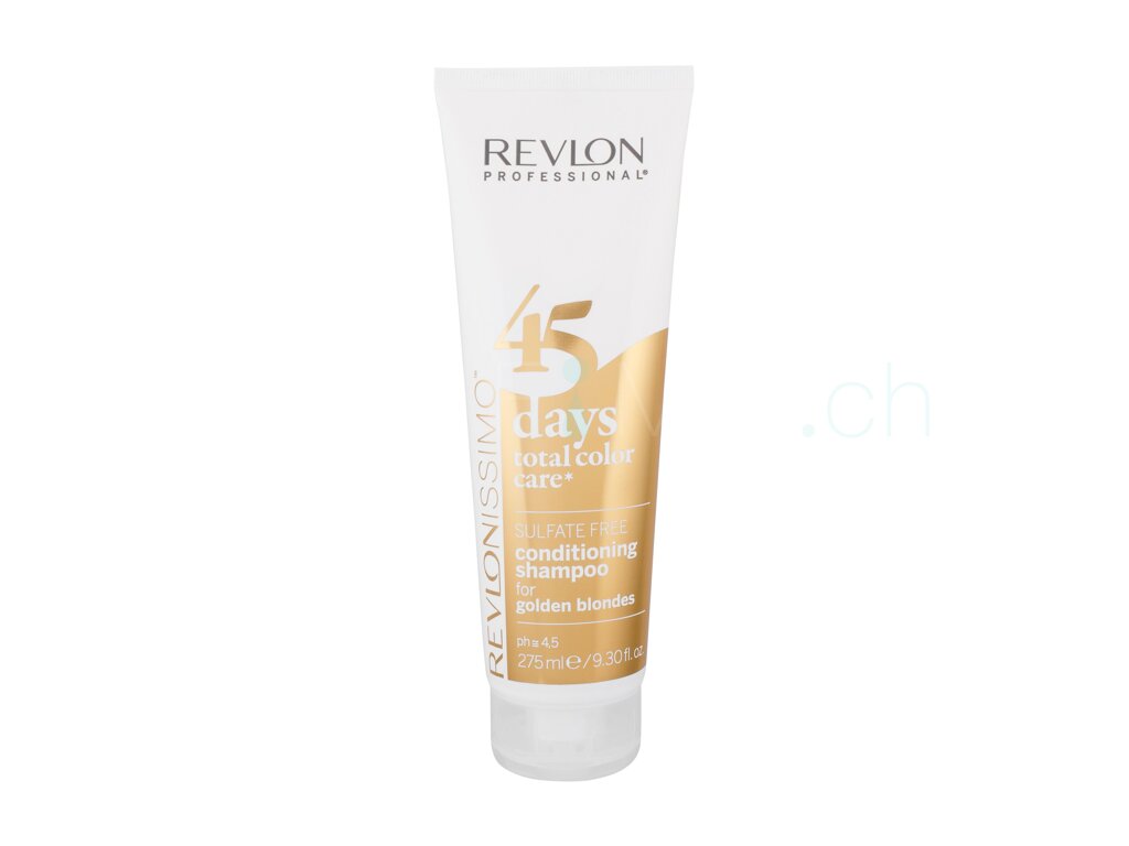 Shampoo und Conditioner Revlon Revlonissimo 45 Days 2in1 For Golden Blondes für mittlere bis dunkle Blondtöne. Tiefwirkende und wirksame Haarpflege. Reichhaltige Zusammensetzung reinigt sanft und wirksam Haar und Kopfhaut und verleiht dem Haar wirksamen Haarfarbeschutz. Gleichzeitig wird der Alterungsvorgang beim Haar verlangsamt. Kräftiges und gesund aussehendes Haar dank Revlon Revlonissimo 45 Days 2in1 For Golden Blondes.