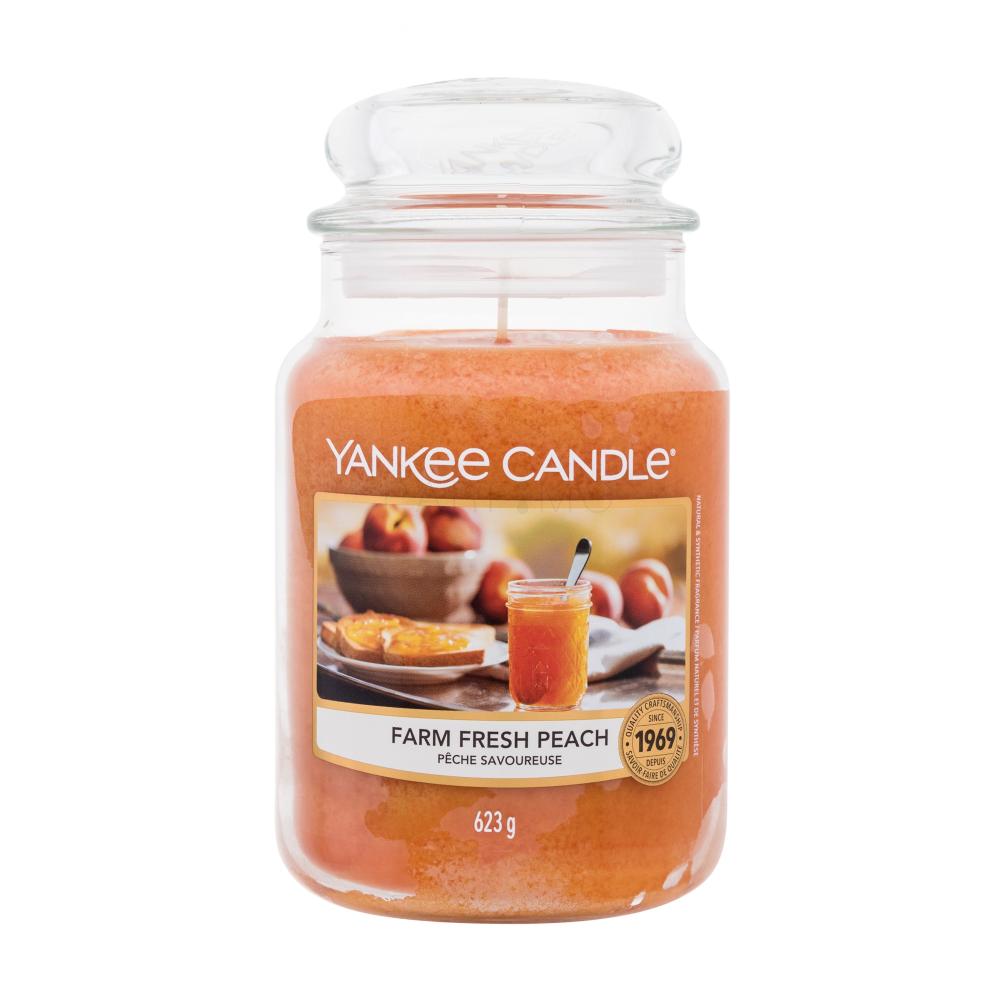Freuen Sie sich auf die Pfirsiche, die im Sommer reif werden und deren Geschmack und Geruch Sie buchstäblich satt haben werden? Warum sollte man warten? Die Duftkerze Yankee Candle Farm Fresh Peach kann ihr Aroma sofort verbreiten! Sobald Sie den handgeglätteten Docht dieser legendären Kerze anzünden, durchdringt der intensive, sehr angenehme Duft von Früchten Ihr Zuhause, als ob Sie gerade Marmelade kochen würden. Frauen, Männer und Kinder werden es genießen.