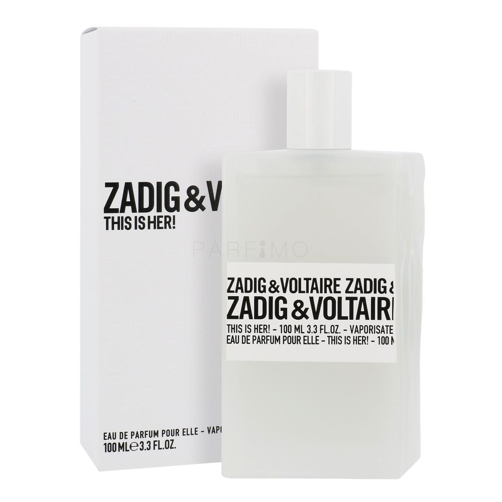 Das französische Modehaus Zadig & Voltaire ist bekannt durch seine wagemutige Verbindung von Rock und Eleganz. Auch das Damenparfum Zadig & Voltaire This Is Her!, das 2016 auf den Markt gebracht wurde, weicht von anderen bereits bekannten Düften ab. Die Marke Zadig & Voltaire This Is Her! präsentiert ein Parfum, das an der Grenze zwischen Purem und Dunklem balanciert.
